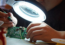 Инженер сервисного центра исполняет работу: заменяет поломанную комплектующую исправной оригинальной запчастью